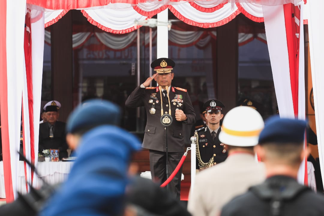 TERNATE — Kepala Kepolisian Daerah (Kapolda) Maluku Utara, Irjen Pol. Waris Agono, menyerukan pentingnya menjunjung tinggi nilai-nilai Tribrata dan Catur Prasetya dalam setiap pelaksanaan tugas Polri. Penegasan tersebut disampaikan dalam acara syukuran usai upacara peringatan Hari Ulang Tahun (HUT) ke-79 Bhayangkara yang berlangsung di Aula Kieraha, Polda Maluku Utara, pada Selasa, 1 Juli 2025.