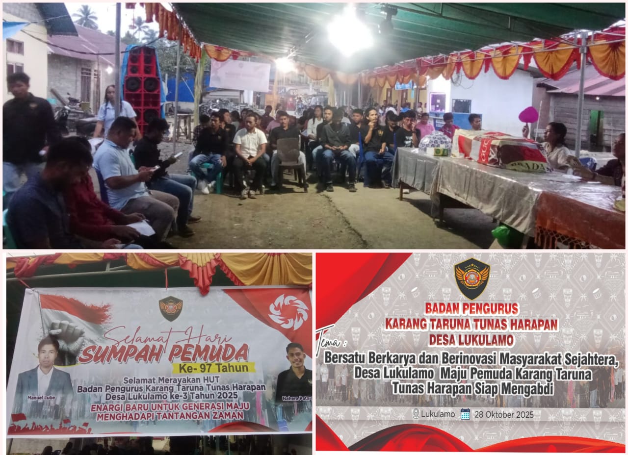 Acara ini juga merayakan HUT ke-3 Tahun 2025 Badan Pengurus Karang Taruna Tunas Harapan Desa Lukulamo.