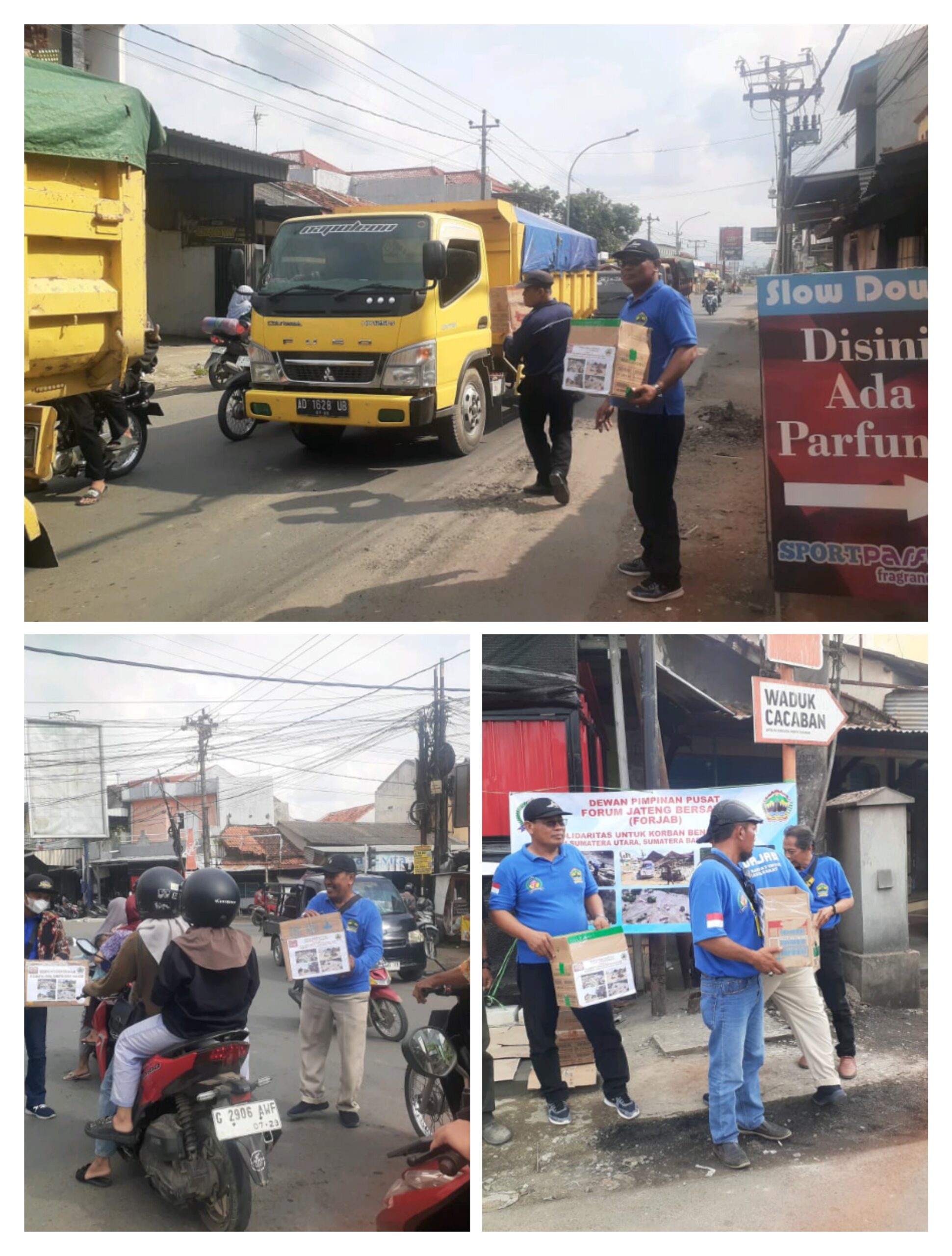 TEGAL -Jateng –13 Desember 2025 — Forum Jateng Bersatu (FORJAB) ketua Riyati dan anggota kembali menunjukkan kepeduliannya terhadap sesama dengan mengadakan aksi donasi bagi korban bencana di Sumatra. Kegiatan ini berlangsung pada sabtu 13 Desember 2025, di beberapa titik strategis wilayah Tegal, Jawa Tengah.