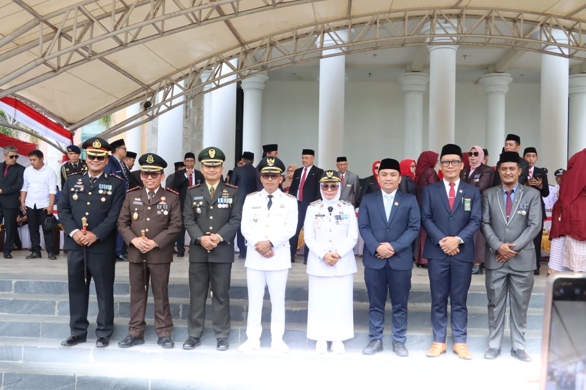 Peserta upacara terdiri dari enam kompi gabungan yang melibatkan unsur TNI, Polri, Satpol PP, Damkar, ASN, mahasiswa, serta pelajar SMA dan SMP. Prosesi diawali dengan penyerahan bendera dari Rumah Jabatan Bupati hingga pengibaran Sang Merah Putih oleh pasukan Paskibraka, yang berlangsung penuh khidmat dan disaksikan ribuan peserta.