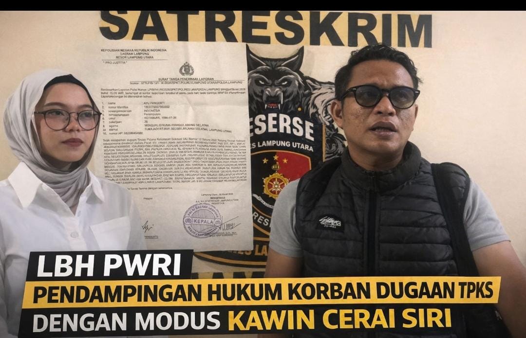 Lampung Utara- Lembaga Bantuan Hukum Pembela Wartawan Republik Indonesia (LBH PWRI) Lampung Utara memberikan pendampingan hukum kepada seorang perempuan berinisial AP (29), yang diduga menjadi korban Tindak Pidana Kekerasan Seksual (TPKS) dengan modus kawin cerai siri oleh seorang pria berinisial HA di Kabupaten Lampung Utara.