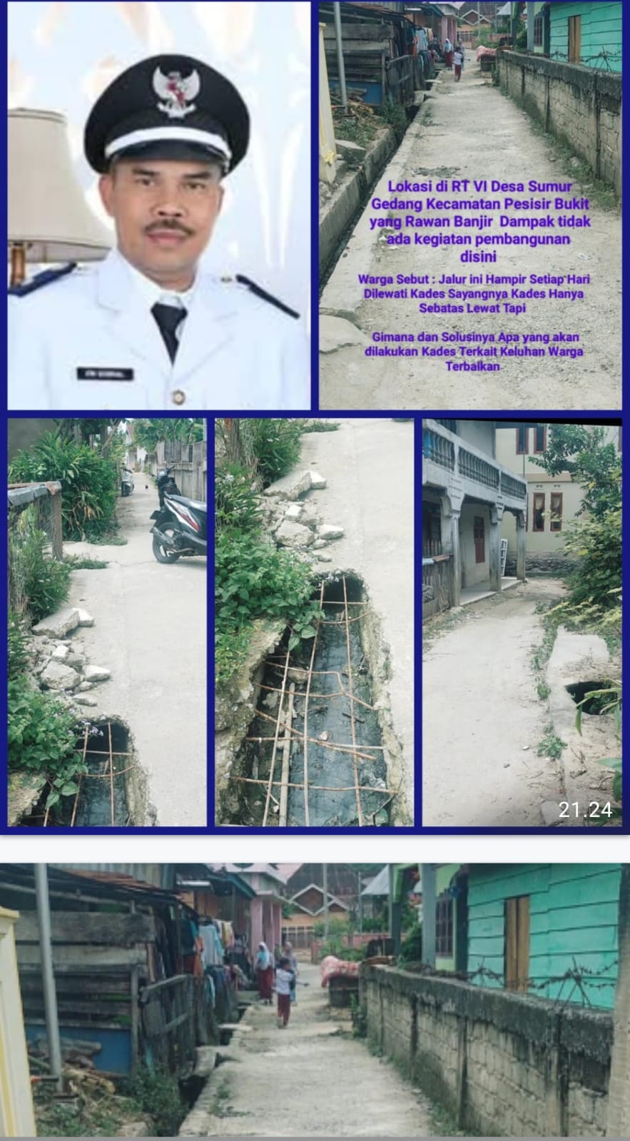 Banyak Infrastruktur yang Rusak seperti Jalan lingkungan dan drainase di beberapa titik rusak parah dan tidak pernah diperbaiki, menyebabkan banjir dan genangan air di rumah warga.
