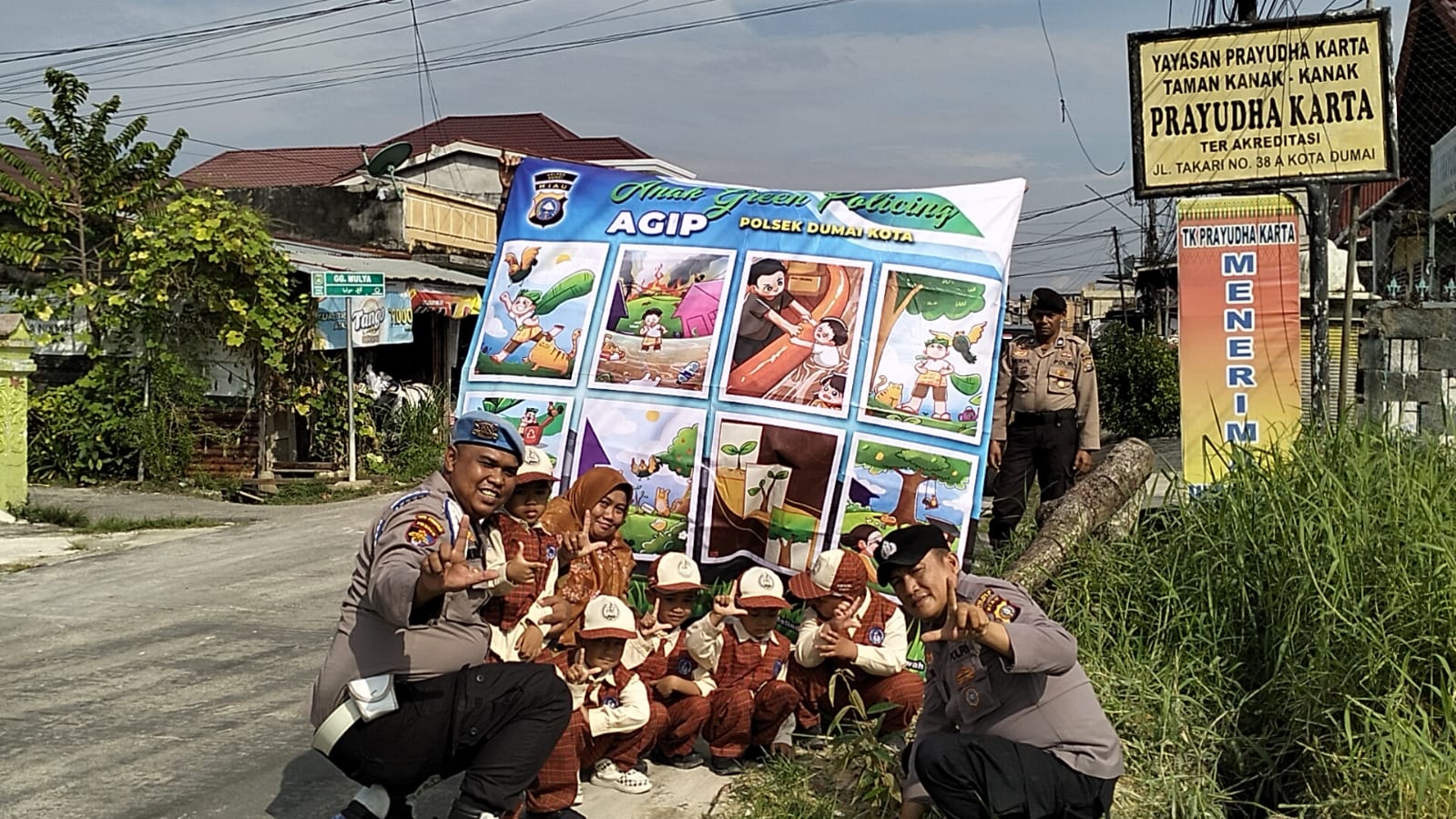 Dumai ( faktahukum.id ), Personil Polsek Dumai Kota telah melaksanakan Kegiatan Anak Green Policing (AGIP) dan penanaman pohon di TK Prayuda Karta, Kelurahan Sukajadi, Kecamatan Dumai Kota, pada hari Senin (8/12) pagi. Kegiatan ini merupakan bagian dari Program Green Policing Polda Riau yang bertujuan menanamkan kepedulian lingkungan sejak dini pada generasi muda.