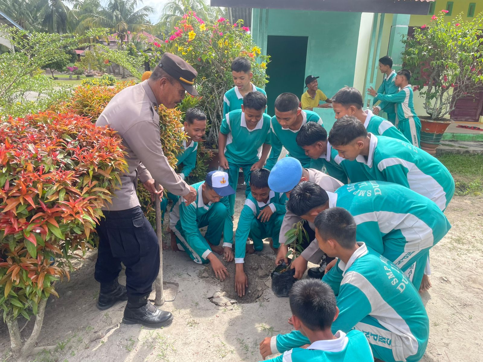 Dengan mengusung tema “Polri Peduli Lingkungan dan Mendukung Gerakan Nasional Penghijauan”, anggota Polsek Bukit Kapur bersama siswa-siswi dan guru SMPN 11 bahu-membahu menanam 22 pohon berbagai jenis, mulai dari mahoni hingga durian.
