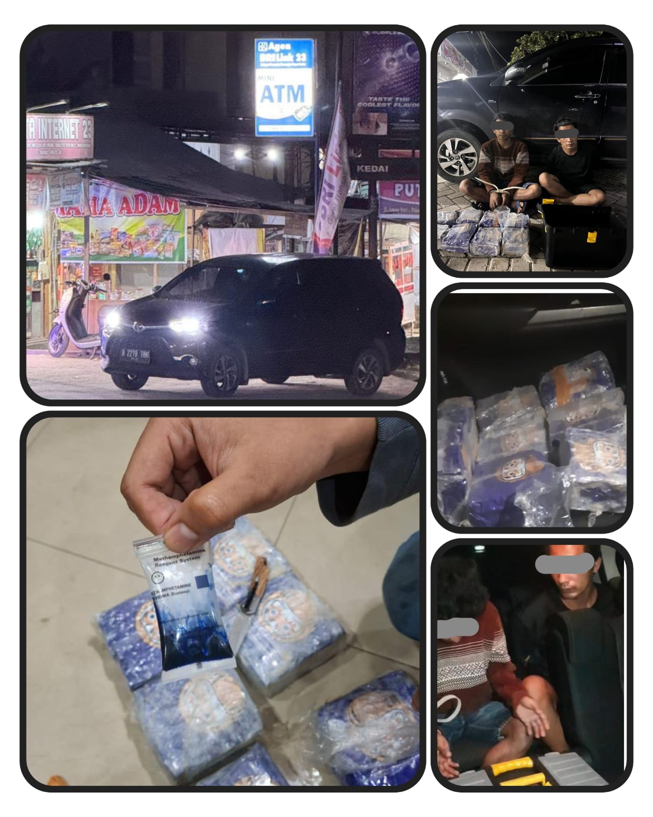 Hasil penyelidikan , Tim Gabungan menemukan sebanyak 8.000 gram Narkotika Jenis Sabu yang dikemas dalam 8 ( delapan ) bungkus Teh China berwarna ungu bergambar Harimau, dan disembunyikan dalam kotak di dalam kotak Tool Kit yang disimpan dalam bagasi mobil, selain itu Tim Gabungan menemukan 1( satu ) kantong plastik kecil bening yang dalamnya berisi Sabu dengan berat total 3 ( tiga ) gram. Seluruh barang bukti berikut tersangka diserahkan dan diamankan untuk diproses sesuai hukum yang berlaku.